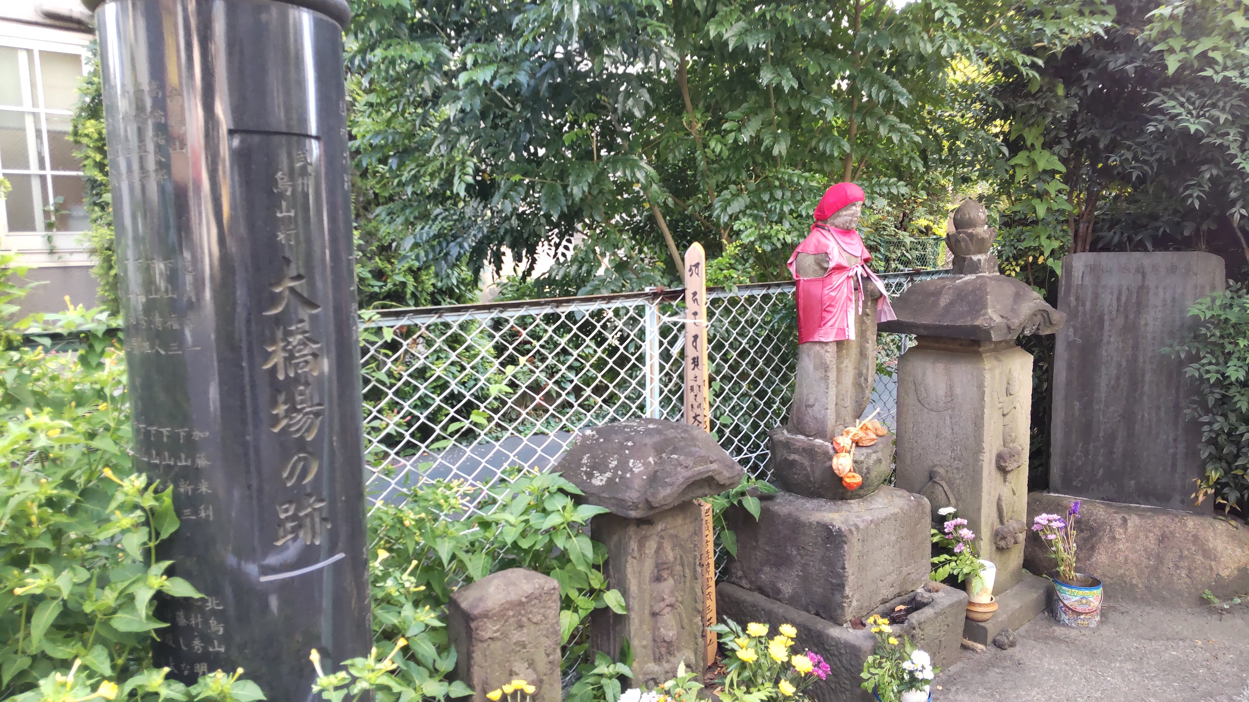 大橋場跡。かつて烏山用水に架橋されていた。お地蔵さまの建立は1771年と1700年のもの